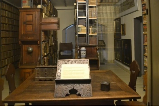 루터의 집이 한때 대학건물로도 사용되었던 적이 있어서 그런지 도서관쯤으로 생각되는 공간이 있는데, 아예 유리창으로 가로막아 놓아서 접근 자체를 불가능하도록 하고 있다. 즉, 사람이 다닐 수 있는 최소한의 공간을 제외하면 실제로는 도서관쯤에 해당하는 넓은 공간이 모두 유리벽안에 들어가 있다는 이야기이다. 가가이에서 보지 못하는 약간의 아쉬움은 있지만, 사진으로만 보아도 아래 사진들 속의 책이나 탁자는 모두 보존에 신경 써야 할 것 같은 느낌이 들기는 하다.