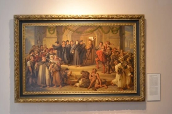 지금부터는 1층의 전시물 중 내가 주의 깊게 보았던 것들에 대한 이야기로 넘어가도록 하겠다. 먼저 이것은 '교황의 파문칙령을 불태우는 루터(1834년작, 캔버스에 오일)'이다. 잘 알다시피 루터는 교황의 면죄부 판매에 대해 조목조목 반대하는 95개조의 글을 비텐베르크의 성교회에 게시함으로 종교개혁의 불꽃을 당겼는데, 이를 이유로 교황 레오 10세는 루터를 파문하는 칙령을 발한다. 그러나 루터는 교황의 이 파문칙령을 불태워버리고 자신의 주장을 굽히지 않는데, 이 사건에 대해서는 앞의 글 "루터의 떡갈나무"편에서 이미 상술한 바 있으므로, 여기서는 더 이상 언급하지 않도록 하겠다.
