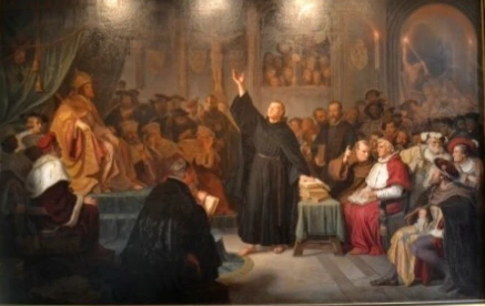 아, 이 그림은 약간의 설명이 필요할 것 같은데, 루터가 보름스(Worms) 제국회의에 나타나 신성로마제국황제 카를 5세의 심문을 받는 모습을 표현한 것이다. 플뤼더만이란 화가의 1864년 작품(캔버스에 유화)인데, 보름스 제국회의에 관하여 자세한 것은 보름스 편에서 다시 이야기하도록 하겠다.