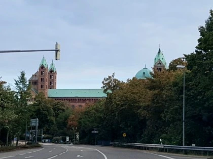 슈파이어에 들어섰을 때, 대성당을 어떻게 찾아가야지?라는 걱정은 할 필요가 전혀 없다. 왜냐하면 슈파이어에 들어서면 도시 어디에서나 대성당을 볼 수 있기 때문이다. 슈파이어를 다니는 동안 대성당을 보지 않으려면 고개를 숙여 땅바닥에 고정시키는 것이 유일한 방법이라고 해도 과언이 아닐만큼 말이다. 실제로 자동차를 몰아 슈파이어에 들어서기만 하면 대성당이 이렇게 자신의 모습을 보여준다.