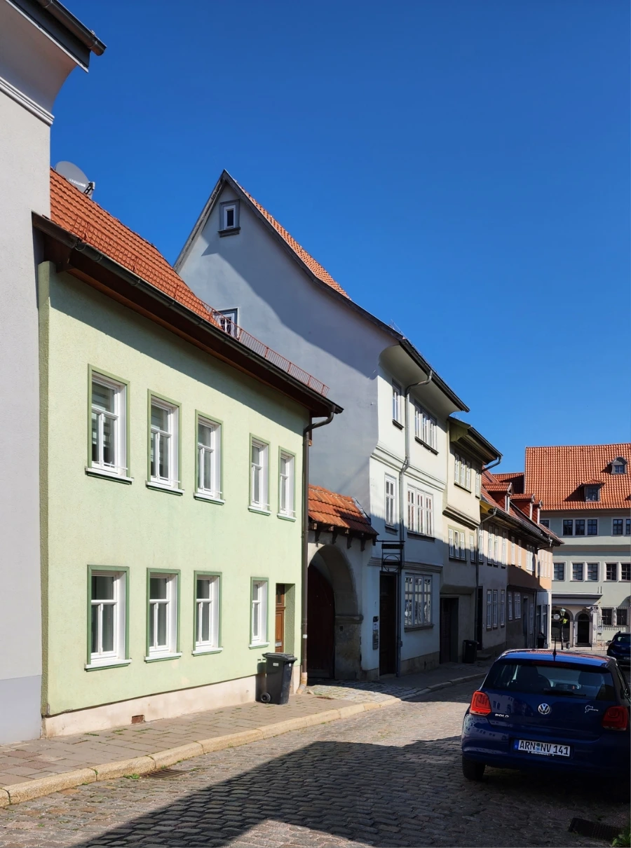 바하의 삶의 흔적을 쫓아 가보는 여정에서 바하가 오르가니스트로 활동했던 아른슈타트를 찾아보겠다는 생각을 하기는 했지만, 사실 아른슈타트에 대한 정보는 거의 전무했다. 바하가 오르가니스트로 재직했던 바하교회(Bachkirche) 정도가 내가 아는 전부였을 정도로 말이다. 그런데 아른슈타트에 와서 받은 안내지도를 통해 오늘 이야기하는 "바하의 집(Bachhaus)"의 존재를 알게 되었고, 그리하여 발걸음을 재촉하여 콜가세(Kohlgasse) 7번지에 있다는 바하의 집을 찾게 되었다. 아, 독일어에서 가세(Gasse)란 보통 좁은 골목길을 의미하는데, 일단 콜'가세(Gasse)'의 모습부터 보여주도록 하겠다.