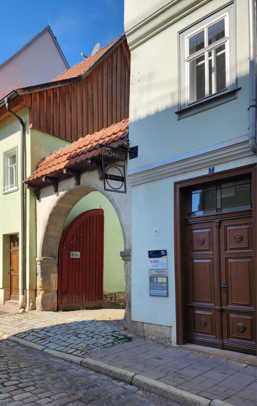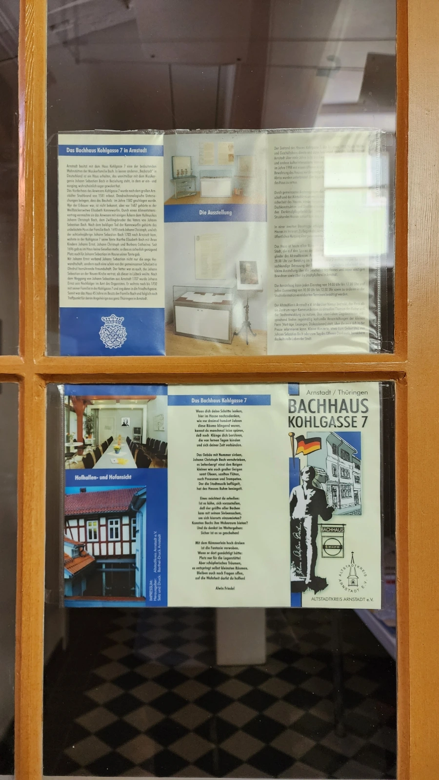 이런 글들을 읽고 있자니 자연스레 떠오르는 의문이 있었다. 도대체 우리가 아는 바하가 이 집에 살기는 했던 것인가? 이런 의문은 아른슈타트시가 만들어 낸 안내 책자속에서 "우리가 아는 요한 세바스티안 바하도 아마(wahrscheinlich) 이곳에 살았을 것이다"라는 글을 만나면서 풀렸다. 즉, 1687년부터 1732년까지 45년간 바하 집안이 이 집을 소유했으니, 1703년부터 1707년까지 이곳에서 오르가니스트로 활약했던 바하도 확실하지는 않지만 이집에 살았지 않았겠는가?