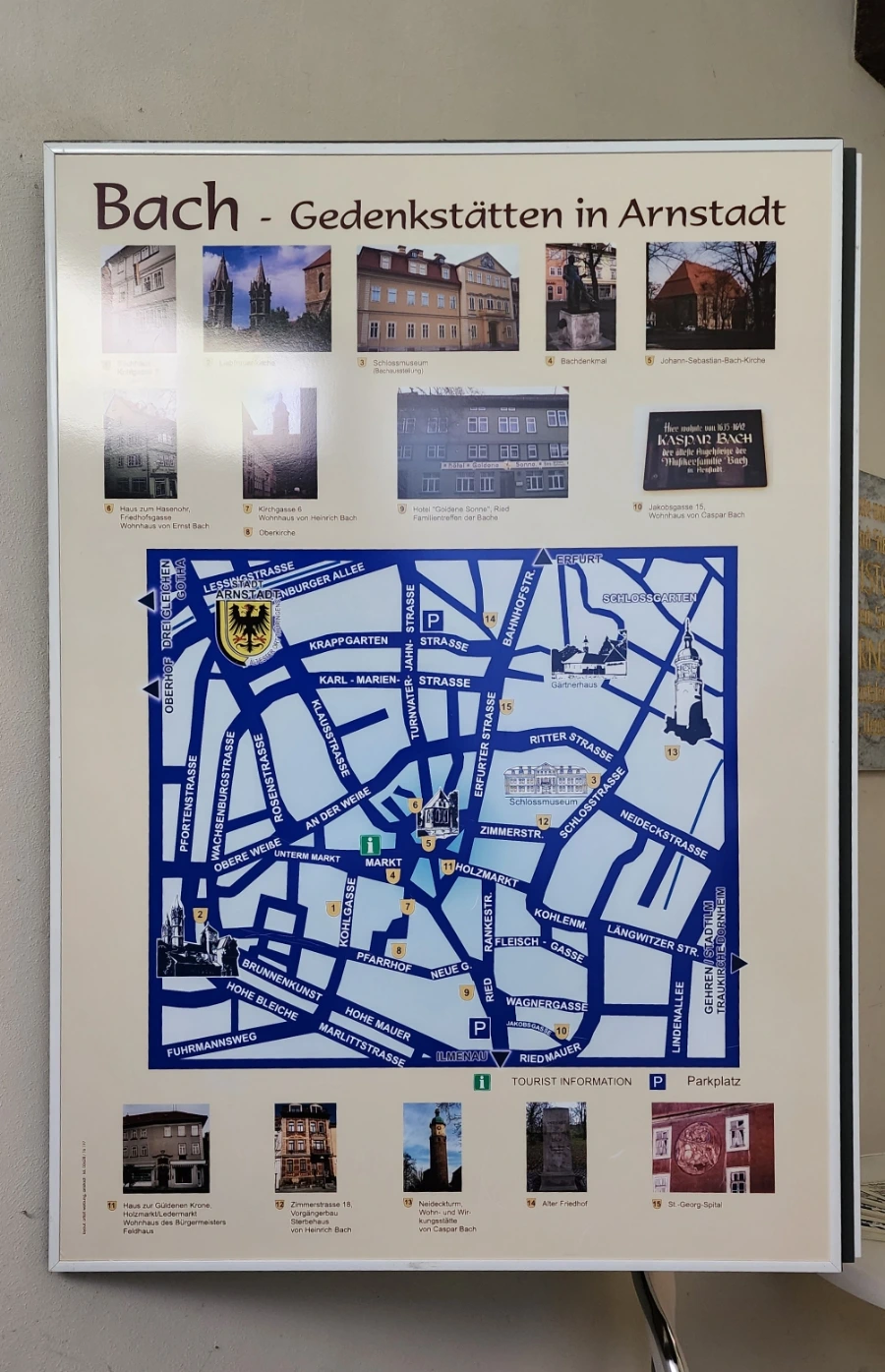 잘 알다시피 바하(Bach)의 집안은 수세대에 걸쳐 셀수없을 정도로 많은 음악가를 배출한 집안이다. 때문에 이곳 아른슈타트에서 활약한 바하만도 엄청시리 많다. 그러다보니 아른슈타트에는 그들이 지나쳐간 기억할만한 장소만 해도 여러곳이 있는데, 아래 사진은 그들 장소를 잘 보여주고 있다.