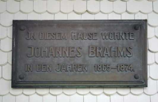 입구 오른쪽 위에 1864년부터 1875년까지 브람스가 이곳에 살았다는 이야기가 적혀 있다.