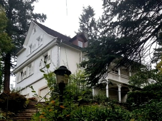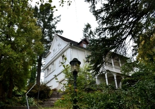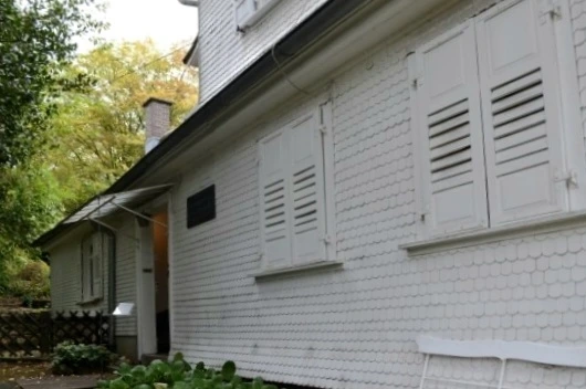 안내판 옆으로 계단이 나 있는데, 그 계단을 들어서면 눈에 들어오는 하얀 집이 바로 브람스하우스이다.