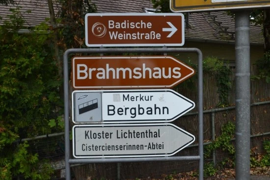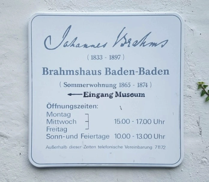 그런데 이와 달리 브람스의 흔적이 또렷하게 남아 있는 곳이 있는데, 브람스가 1865년부터 1874년까지 매년 여름이면 찾곤 했다는 바덴 바덴(Baden-Baden)이 바로 그곳이다. 한편 바덴바덴에는 브람스가 머물던 집이 그대로 남아 있는데, 브람스하우스(Brahmshaus)가 그곳이다. 재미있는 것은 독일사람들조차 바덴바덴에 있는 브람스하우스의 존재를 잘 모른다는 것이고, 나 또한 이미 2번씩이나 바덴바덴을 찾았었지만 이곳의 존재를 전혀 몰랐다. 그러다 브람스에 관한 글을 쓰려고 자료를 모으는 도중에 우연히 브람스하우스의 존재를 알게 되어 또다시 바덴바덴을 찾게 된 것이다. 브람스하우스 근처에 있는 주차장에 차를 대면, 브람스하우스를 가리키는 이정표가 보인다.