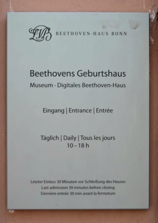 그리고 출입문 옆으로 베토벤 하우스에 대한 설명과, 개관시간 등이 적힌 안내판이 붙어 있다.
