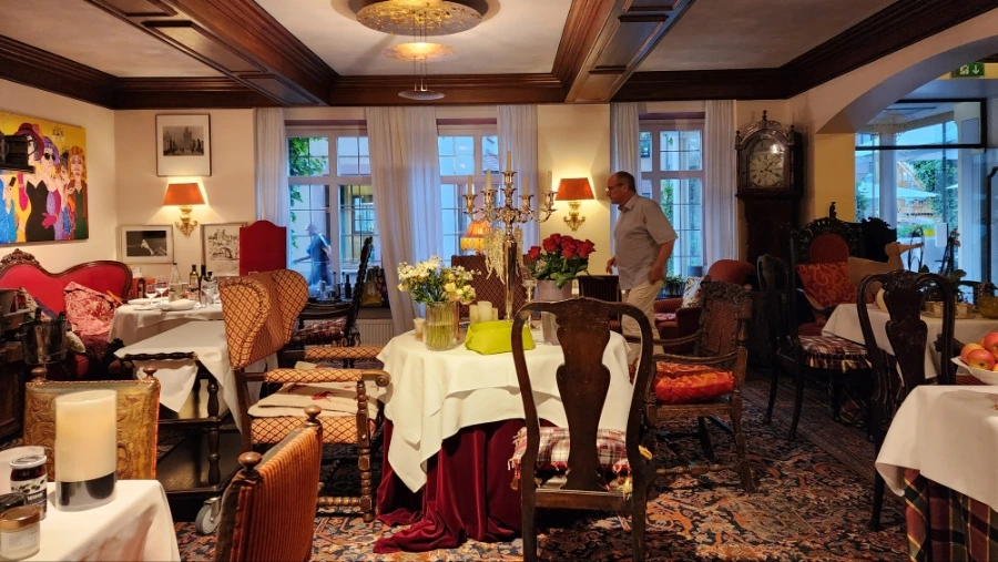 Hotel Goldener Karpfen의 레스토랑은 아침엔 주로 호텔 손님들의 아침 식사(부페)를 위한 공간으로 활용되는데, 꽤 괜찮은 식사를 제공한다. 무엇보다도 다종다양한 빵을 제공하는 것이 특징적인데, 하나같이 맛있다. 독일의 빵에 길들여진 입맛을 갖고 있는 사람들에게는 이것만으로도 일단 최선의 식사가 되기 위한 필요조건은 갖춘 셈이다.