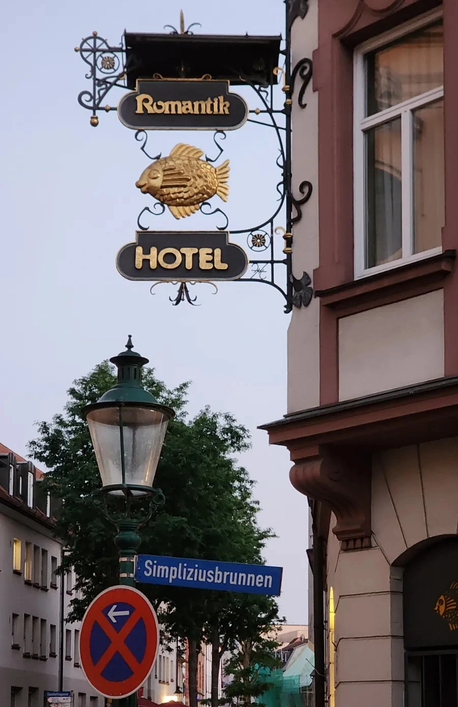 위 사진 속 왼쪽에 이 호텔의 상징인 잉어의 돌출간판이 있는데, 덕분에 호텔을 찾는데 큰 어려움은 없다. 잉어 밑으로는 호텔이 위치하고 있는 Simpliziusbrunnen거리 이정표가 보인다. 아, Simpliziusbrunnen은 이 도시의 성자(聖者)의 이름인 심플리지우스(Simplizius)와 분수를 의미하는 brunnen의 합성어이다.