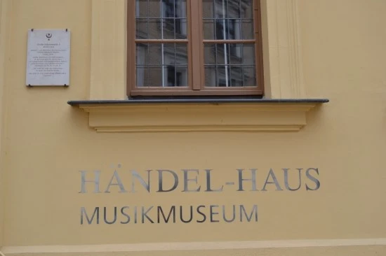 입구로 들어가는 계단의 오른쪽 벽에 "헨델의 집. 음악박물관(HÄNDEL-HAUS, Musikmuseum)"이라고 쓰여 있다.
