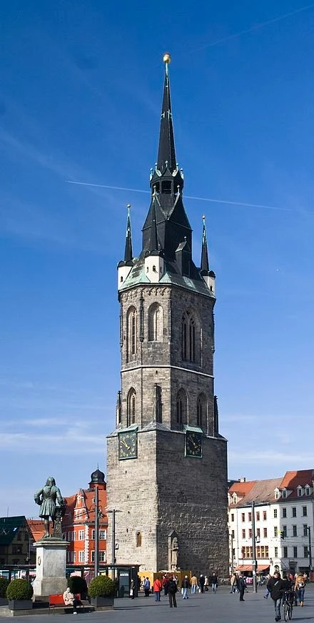 한편 헨델의 집 이외에 할레 관광의 또 한 축을 들자면 할레 시민들의 삶의 터전이 되는 마르크트플라츠(시장광장)를 꼽을 수 있는데, 광장 중앙에 할레의 상징인 붉은 탑(Roter Turm)이 있다. 붉은 탑은 원래 나중에 따로 이야기할 마르크트교회의 종루(鐘樓, Glockenturm)의 역할을 했던 탑인데, 탑의 높이만도 84m에 이를 정도로 높아서 할레 어디에서나 쉽게 바라볼 수 있어. 이 때문에 붉은 탑은 할레의 랜드마크로 기능하고 있다.