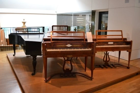 2 전시실의 중앙에서 약간 오른쪽에 몇 대의 피아노가 함께 전시되어 있는데, 2011년에 내가 처음 이곳을 찾았을 때와는 전시방법이 조금 바뀌어진 것 같았다. 아래 사진이 2011년의 모습인데, 왼쪽에 있는 검은색(?) 악기의 정체는 내 아직도 모르고 있다. 이 악기 앞에는 Hammerflügel이라고 쓰여 있었는데, 문제는 설명서를 읽어 보아도 여전히 이해가 안 되는 부분이 있었다는 것이다. 우선 Flügel 이야 보통 그랜드피아노를 의미하니까(그냥 피아노는 Klavier라고 한다) 그렇다 치고, 문제는 Hammer인데 이것도 피아노뚜껑(이렇게 무식한 말을 써도 되나?)을 열어보면 햄머가 있으니 대충 이해가 되는 면이 있기는 하다. 그런데도 의문은 계속되었는데, 그것은 햄머가 없는 피아노는 없을 것 같다는 것, 즉 모든 피아노가 Hammerflügel 아닌가?라는 것이었다.