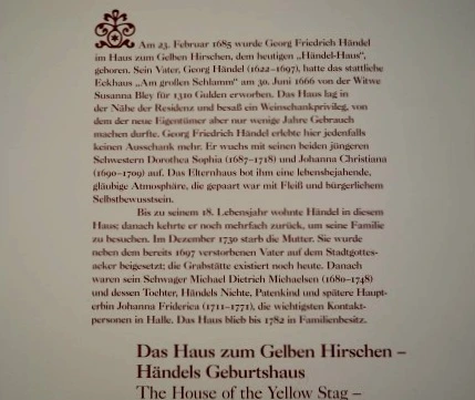 그리고 또 한쪽 벽면에는 "이 집에서 유명한 예술가이자 작곡가인 헨델이 1685년 2월 23일에 태어났다"라고 새겨져 있다.