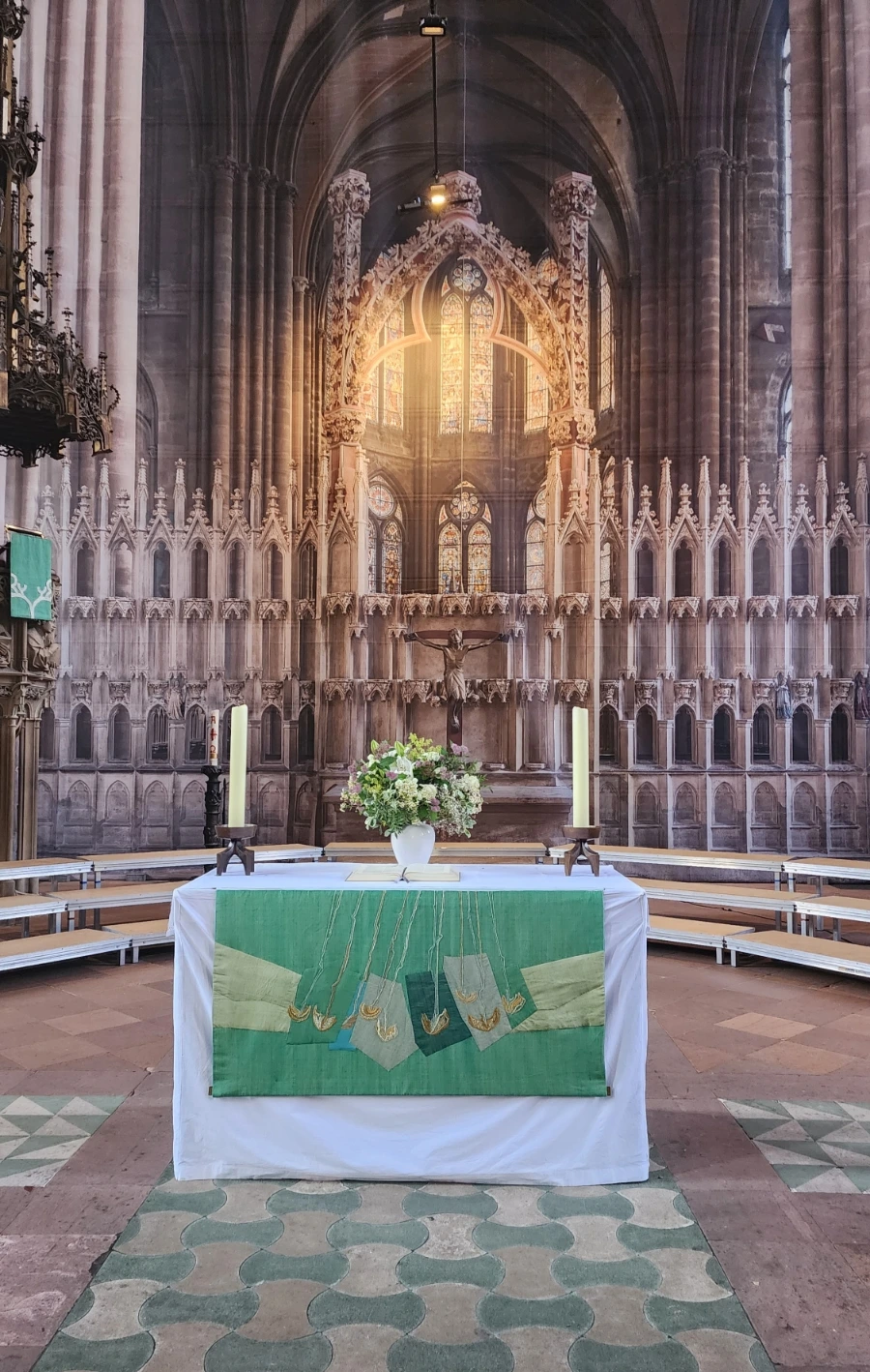 휘장 앞에 있는 제단인데, 공사기간 중에 임시로 사용하고 있는 듯한 느낌을 받았다.