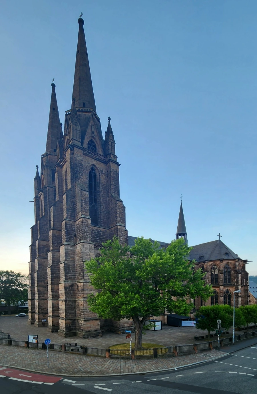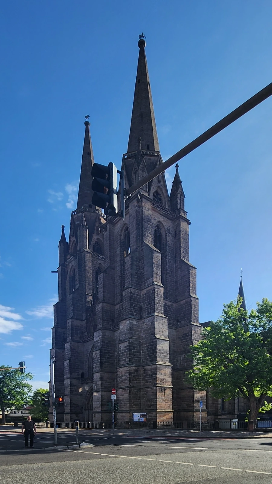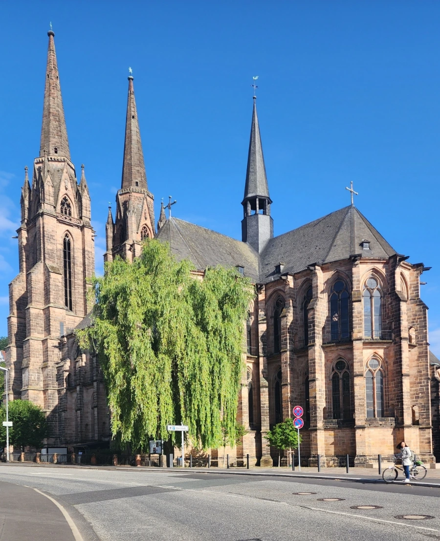 지금부터는 내가 찍은 엘리자베스교회의 모습을 보여 주도록 하겠다. 위키피디아가 제시하는 방향을 고려하면, 이것은 남서쪽 방향에서 바라본 것 교회의 모습이다. 조금 더 정확히 남쪽으로 치우친...