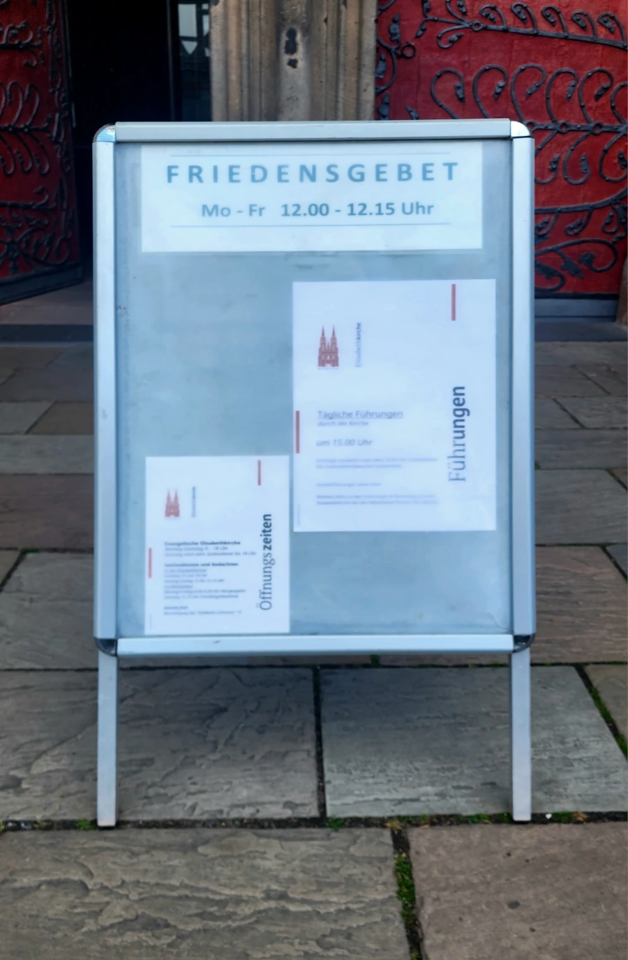 개관시간에 맞추어 도착하니 문이 열려 있다. 그리고 그 앞으로 월요일부터 금요일까지 15분 정도 평화를 위한 기도모임이 있음을 알리는 입간판이 세워져 있다.