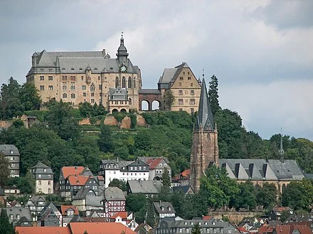멀리서 교구교회와 마부르크성을 함께 잡은 모습이고,