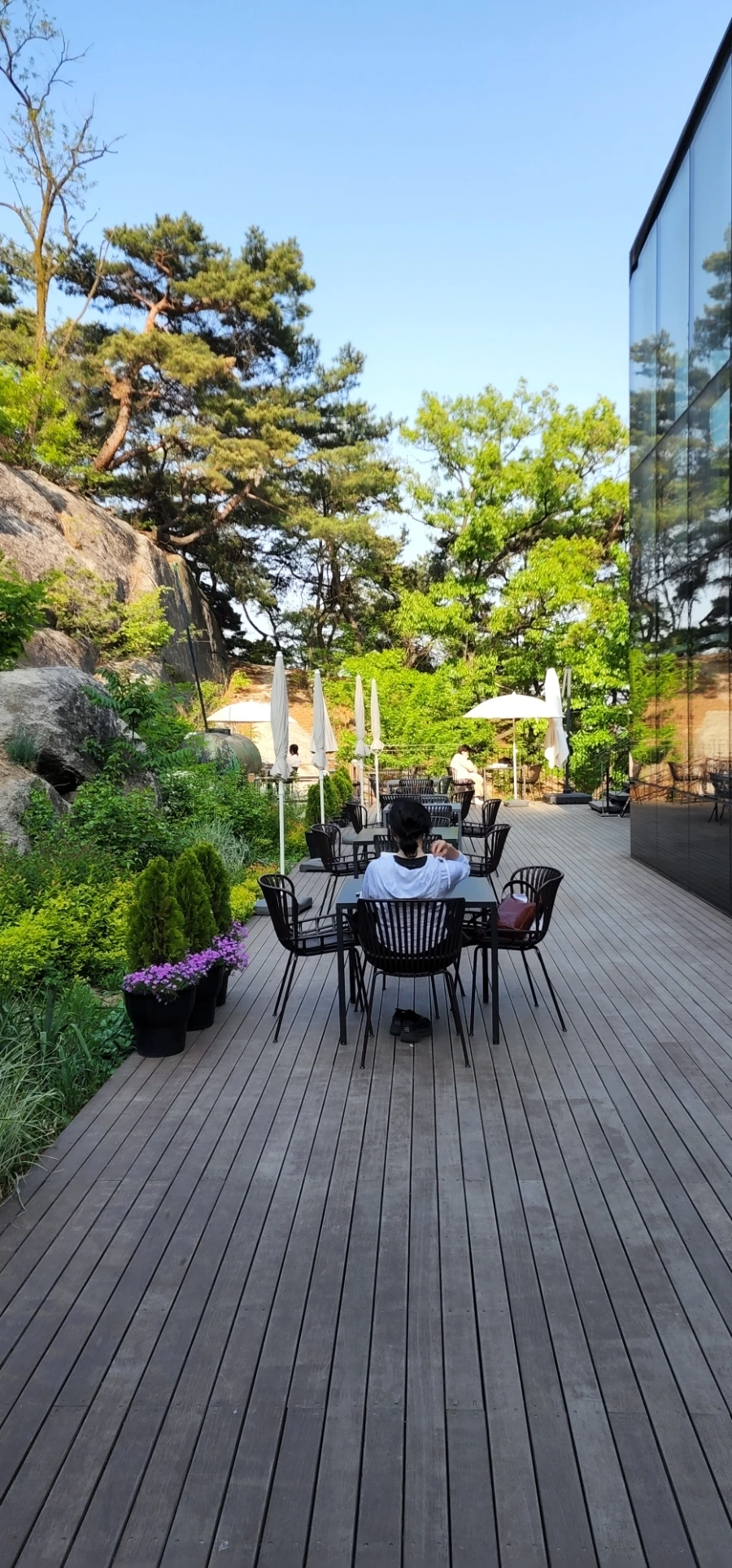 아래층에서 가장 마음에 들었던 공간은 이 곳인데, 역시 한 분이 이미 오로지 하고 있어. 그 분 앞에 빈 자리가 있기는 하던데, 당신만의 시간을 즐기는 데 방해가 될까봐 앉기를 포기했다.