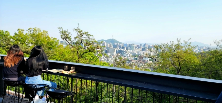 2층 테라스. 서울 시가지가 한눈에 내려다 보이는 목 좋은 곳은 젊은 처자 둘이 이미 자리를 차지했다. 내가 할 수 있는 일이라고는 두 처자의 뒷모습을 훔쳐보는 것이 전부.