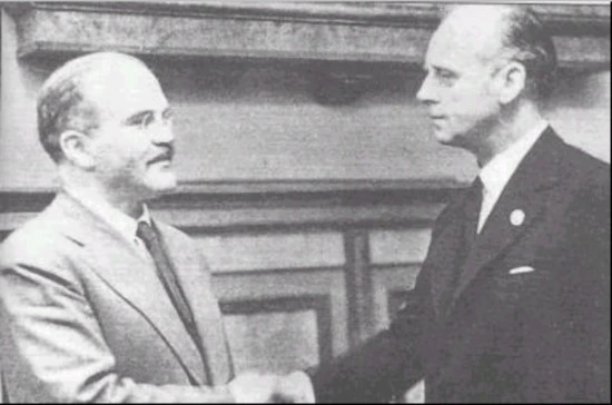 시계추를 2차 세계대전 언저리에 국한시켜 생각해 보면 발트 3국이 구 소련의 지배하에 들어가게 된 결정적 계기는 1939년 8월 23일에 나치 독일과 소련 간에 체결된 '독소 불가침 조약'인데, 이 조약을 서명자인 소련 외무장관 몰로토프와 독일 외무장관 리벤트로프의 이름을 따서 "몰로토프-리벤트로프 조약(Molotov–Ribbentrop Pact)"이라고도 부른다. 이 몰로토프-리벤트로프 조약을 근거로 나치 독일이 물러간 1944년부터 소련의 발트 3국에 대한 지배가 시작되는데, 아래 사진이 조약에 서명한 이후 악수를 나누고 있는 몰로토프(왼쪽)와 리벤트로프(오른쪽)의 모습이다.