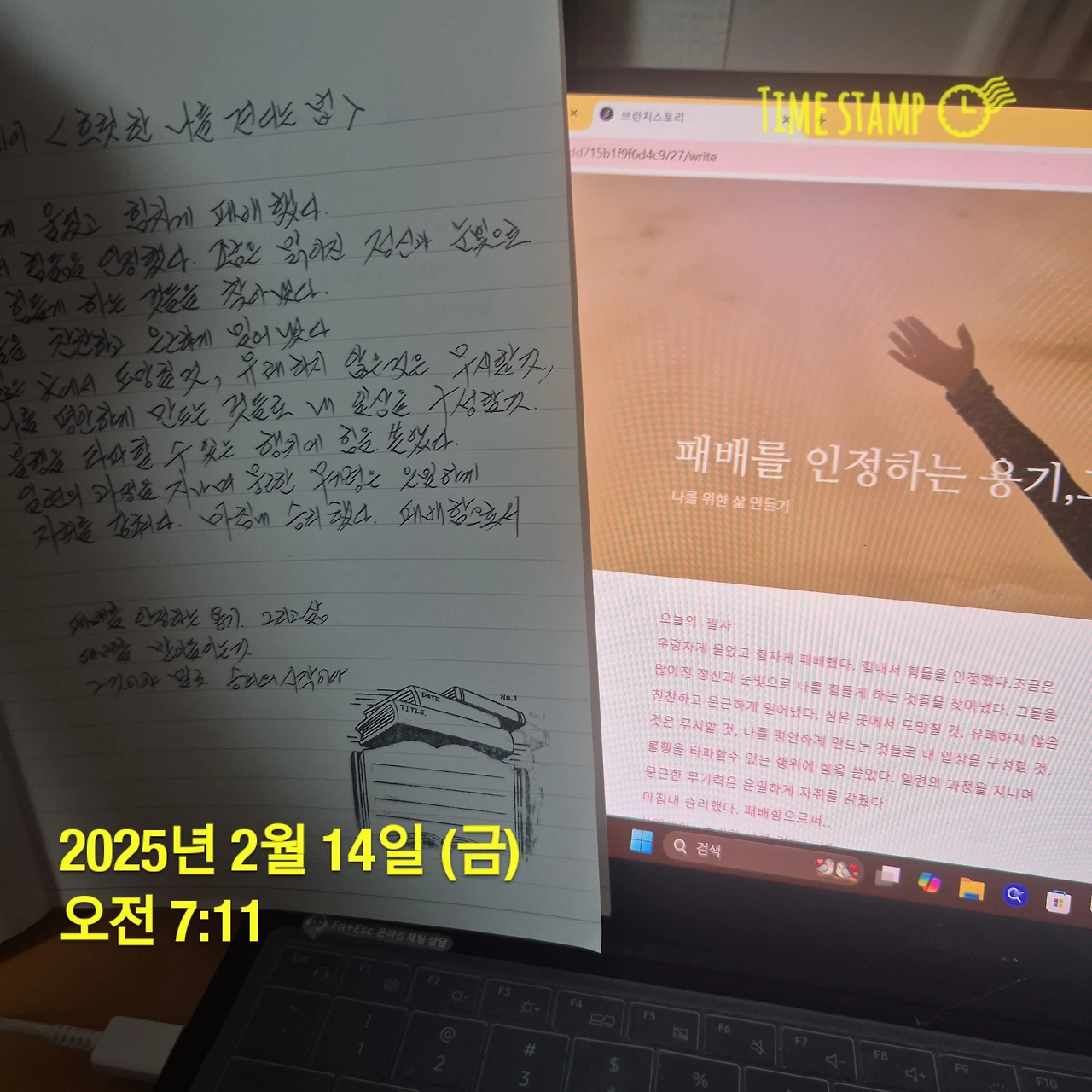 오늘의 필사 문장은 "열심히 노력했고, 또 패배를 인정하며 결국엔 승리했다."