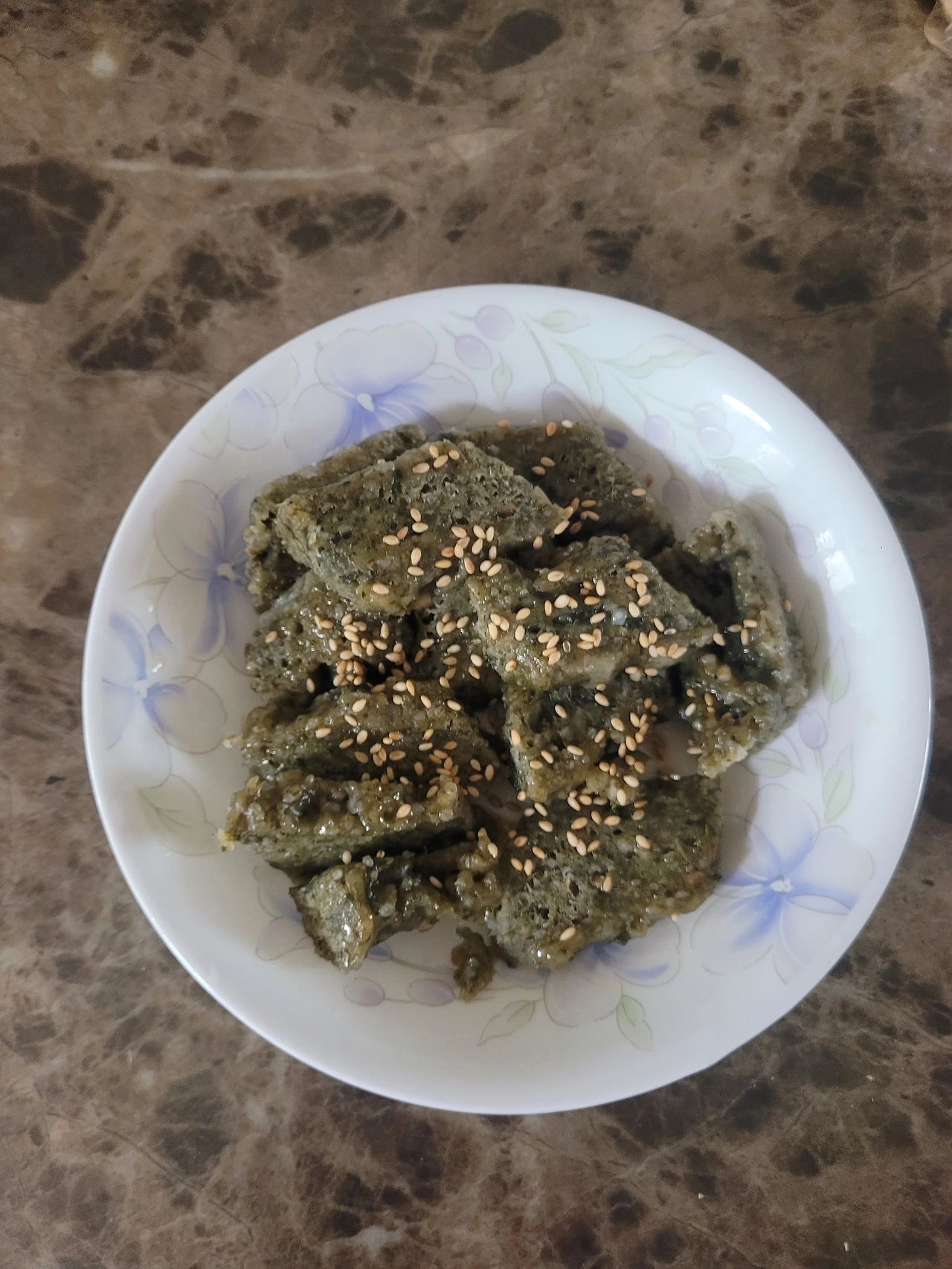 쪄서 접시에 담고 참기름 발라 깨를 뿌리니 남편이