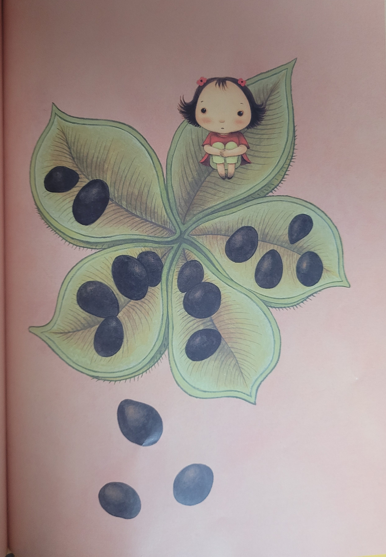 그림에서 씨앗을 이렇게 잘 표현해 놓아 관찰력이 대단함을 느꼈다. 매번 그림을 그리지만 이런 묘사는 매우 아기자기하다. 아이가 씨앗을 보는 모습이 마치 자라는 아이같이 보아 공감이 갔다.