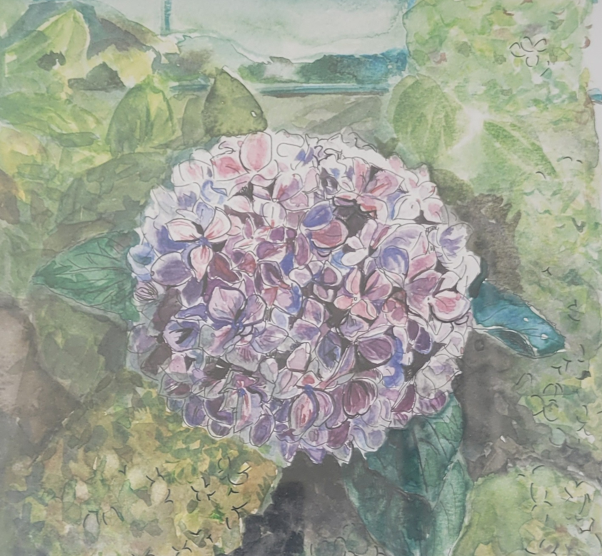 그 후 나의 수국 펜 드로잉과 수채화 그림은 약 한 달간 전시회를 했다. 물론 상금도 받았다.