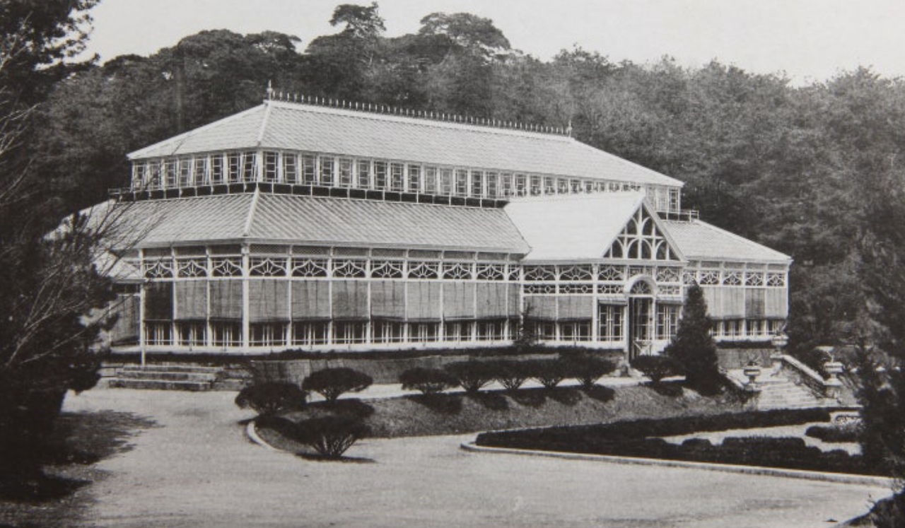후쿠다는 대온실과 1909년 11월에 동식물을 완공한 기념으로 신주쿠 교엔레서 기른 60여종의 난꽃을 홀 전체에 장식---.