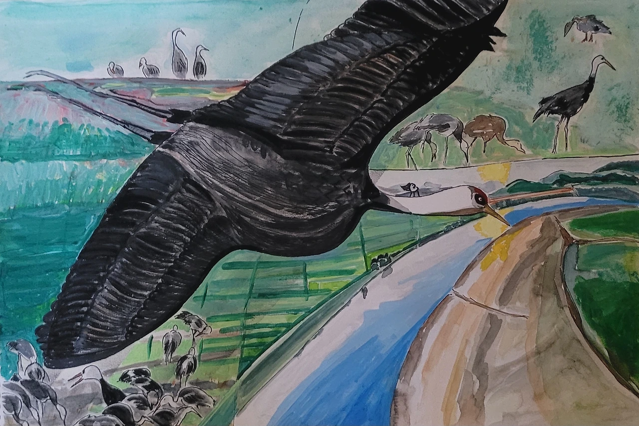 포식자에게 흑두루미 떼가 먹히지 않으려는 필사의 장면을 보면서 난 가끔 삶이 전쟁터 같다는 생각을 많이 했다. 내가 사랑한 흑두루미를 이 무더위에 다시 그려보니 가슴이 뜨거워졌다. 지금 저 많은 흑두루미들은 어디서 쉬고 있을까?
