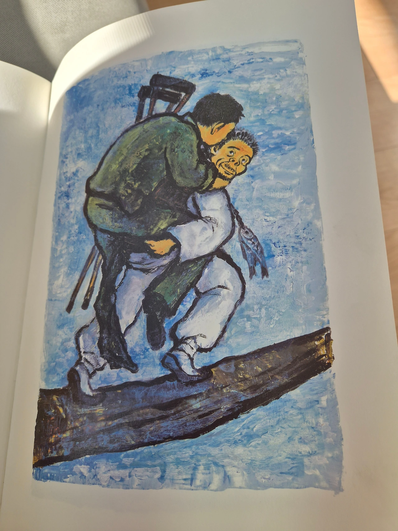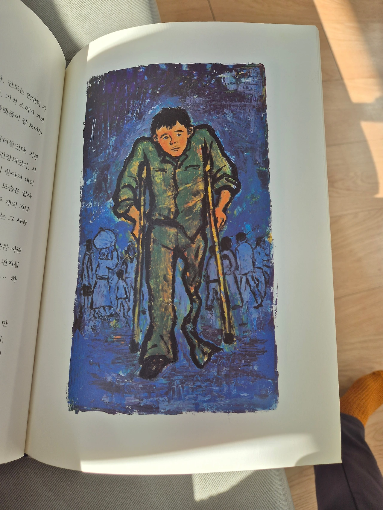 전쟁으로 다리를 잃은 아들과 한팔을 잃은 아버지. 이 이야기가 아이들 도서로도 나와 놀라웠다.