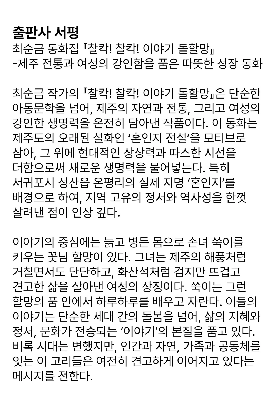 그렇게 해서 나온 동화가 바로 [찰칵! 찰칵! 이야기 돌할망]이다.