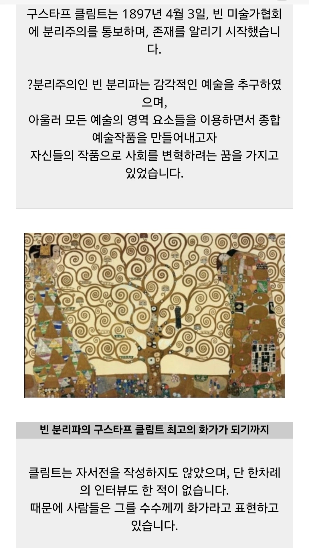 보수적인 예술과 전시 정책을 반항하면서 '분리주의'를 주창한 클림트.