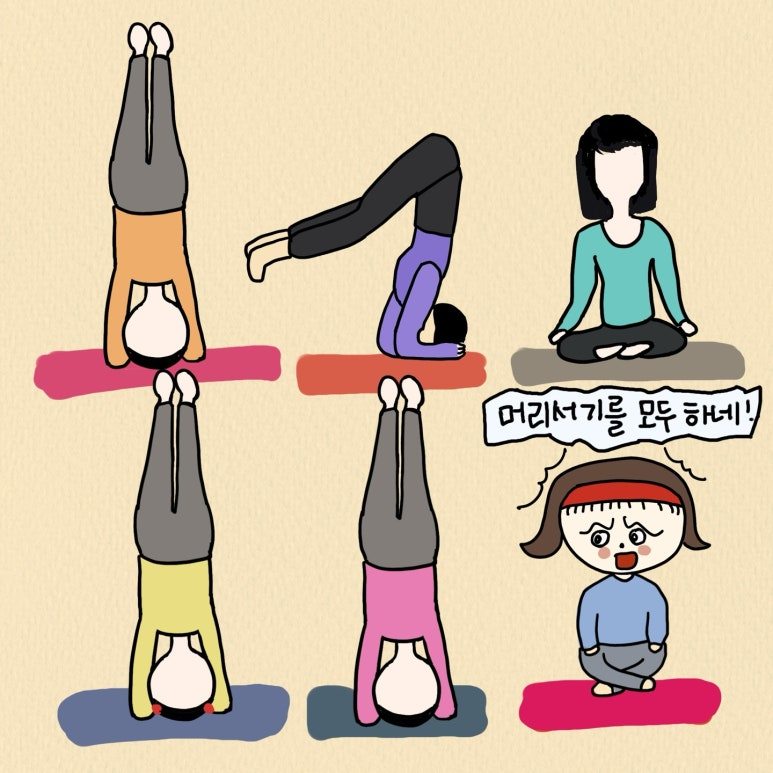 남편 머리를 쥐어박고 다시 머리서기를 연습해 본다.