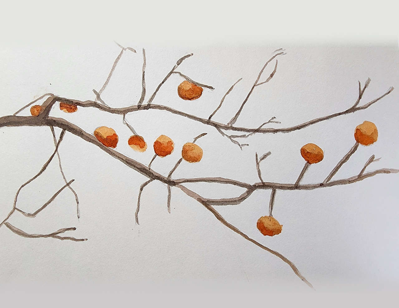 말라빠진 감나무 가지 끝에