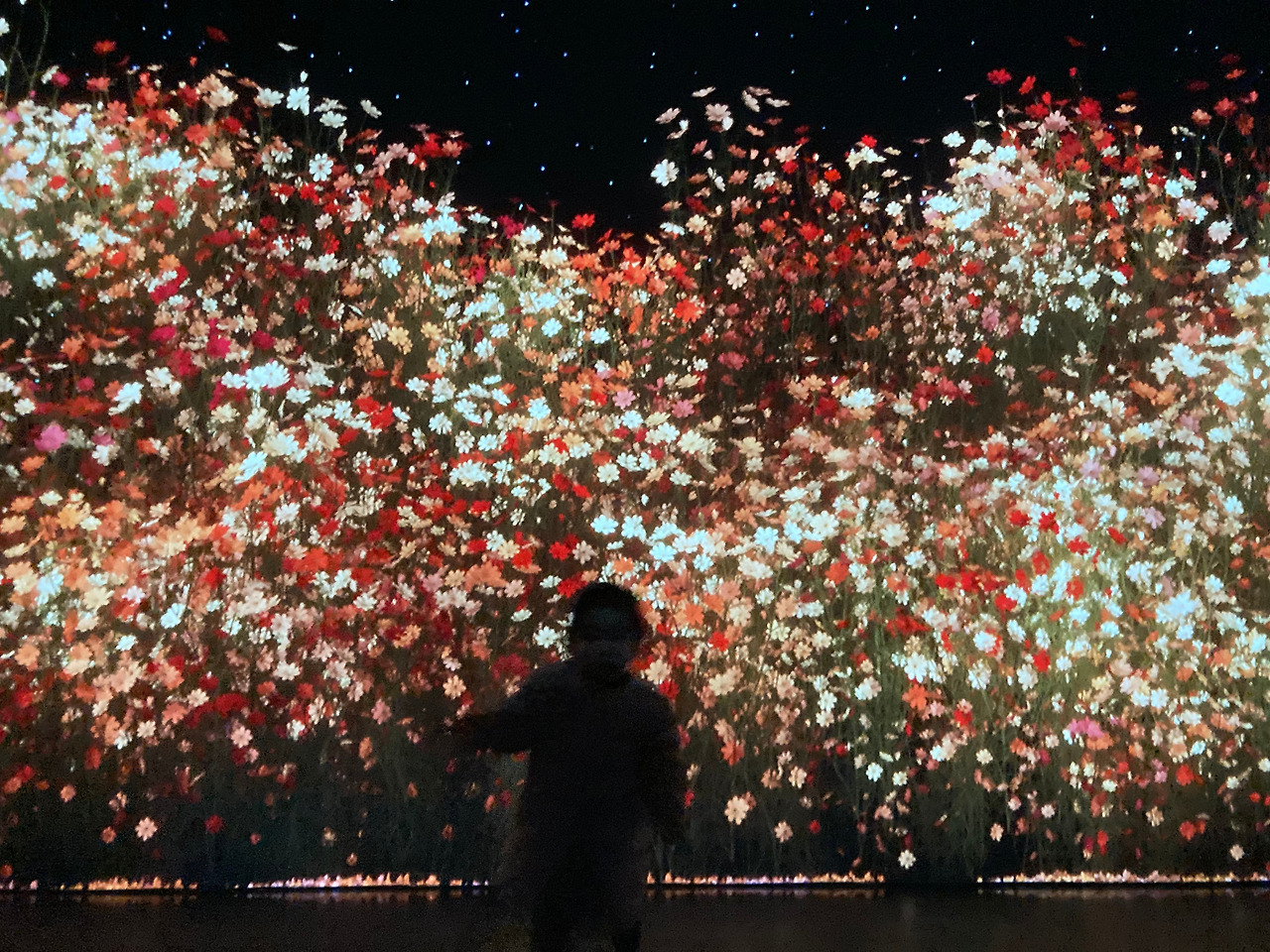 첫 전시관에 들어서서 어두운 복도를 따라 걷자 꽃향기가 먼저 느껴졌다. 곧이어 나타난 장막을 걷어내고 들어서자 거대한 공간을 가득 메운 수만 송이의 꽃들이 나타났다. 아스라이 보여서 몽환적인 느낌을 자아내는 꽃들과 진한 향기, 곳곳에 설치된 대형 거울들이 나의 시각과 공간 감각을 왜곡하면서 공간은 더욱더 거대하게 느껴졌고, 마치 깨어있는 상태로 꿈속에 들어와 작은 우주를 걷고 있는 것 같은 느낌이 들었다.