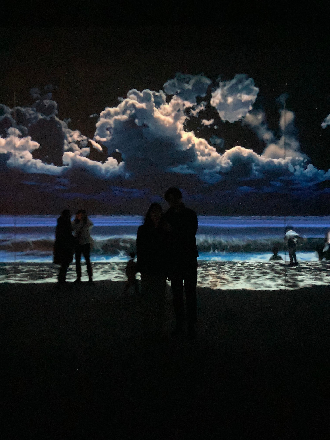 이어서 들어선 방은 조명들이 가득했고 벽면에는 대형 거울들로 죽 에워싸여 있었다. 암전과 명전 상태가 번복되며 공간은 마치 별이 가득한 밤하늘처럼 변했고, 우리는 별이 총총히 박혀 있는 우주 공간을 자유롭게 유영하는 듯한 기분을 만끽했다. 이외에도 강릉 해변에 앉아 발끝으로 해변을 느끼는 기분이 드는 듯한 작품과 소위 인생샷을 남기기 좋은 작품들도 많았다.