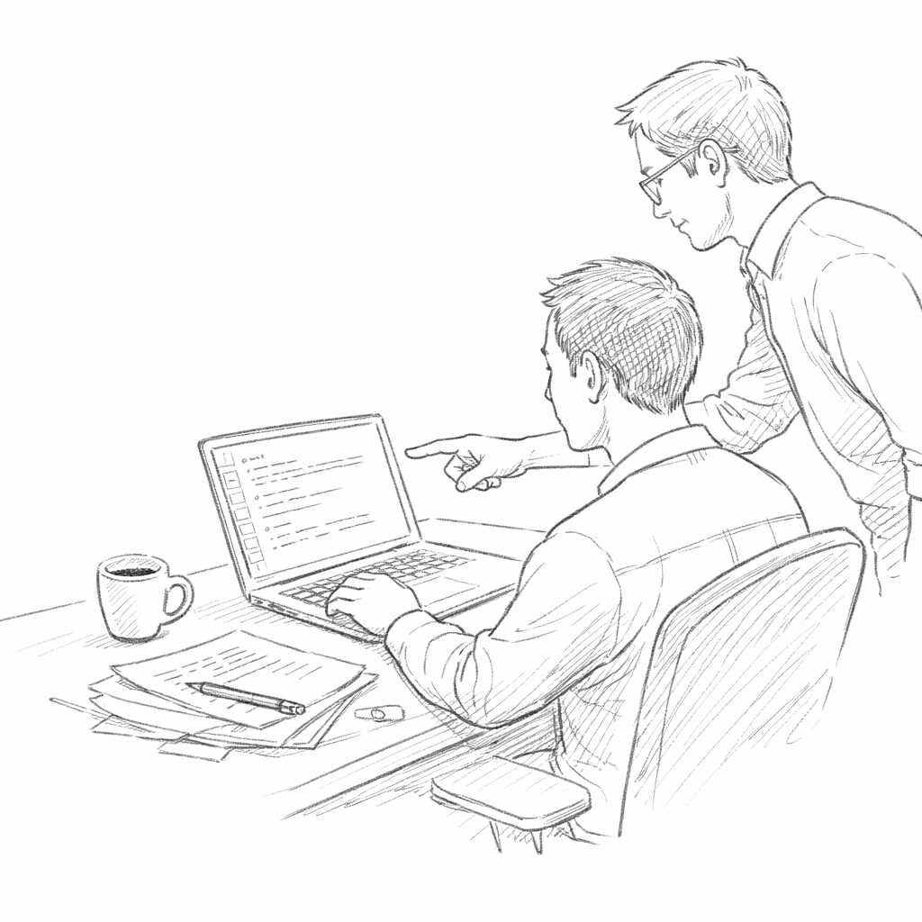 일요일 오전이 되었다. 하루 밤을 꼬박 새웠는데 해결되지 않았다. 나는 조급해지기 시작했다. 어쩔 수 없이 부서 후배 한 명에게 문자를 보냈다. 그 후배는 AI에 관해서라면 약간의 '오타쿠' 기질이 있는 친구였다. "박 박사, 급한 건 아닌데 좀 도와줄 수 있을까?" 후배의 답은 "내일 아침 한번 봐볼게요"였다. 그 내일이 바로 월요일 아침이었다. 나는 최후의 희망을 걸고 내 PC 앞에 앉았다. "AI로 이리저리 다 해봐도 안 되네. 뭐가 문제인지 도저히 모르겠어." 후배가 내 모니터를 본다. "이게 OO 설정 문제인 거 같은데요. 한번 보시죠." 후배는 내 PC를 잡고 씨름했다. 오전 8시 30분부터 10시 30분까지, 정확히 2시간. 그의 손은 끊임없이 움직였다. 기술 문서를 열고, 설정을 수정하고, 환경 변수를 확인했다. 나는 이게 정말 가능할까? 걱정이 커지기 시작했다. "이게 문제인 거 같은데요. 좀만 더 봐보죠. OO 이렇게 저렇게 해보시죠." 나는 이해하지 못했지만, 마지막이란 생각으로 따라 했다.