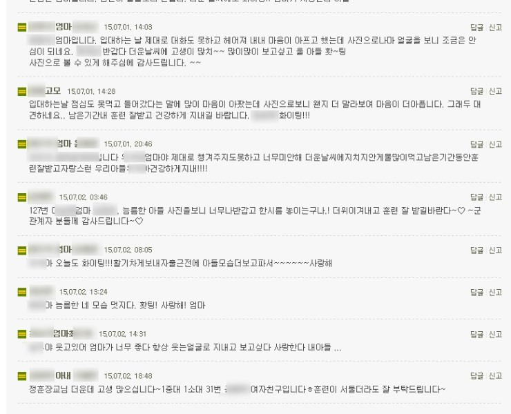 그런 걸 볼 때 4일 만에, 아니 입대 후 내내 누구보다 아들의 사진을 보고 싶어 하셨을 어머님의 환한 표정이 상상이 됩니다.