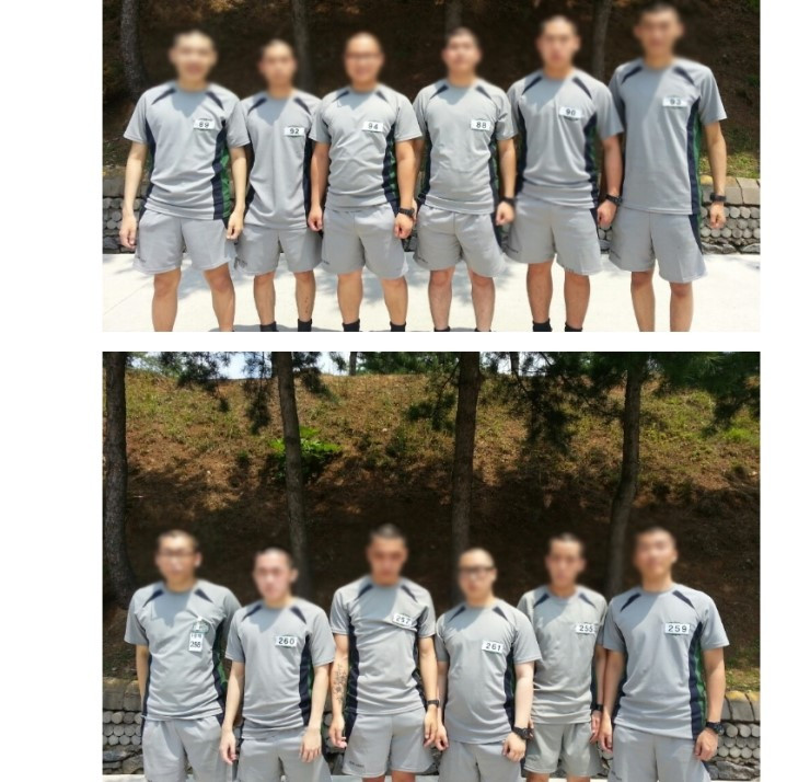 짧게 자른 머리에 체육복을 입고 있는 아들들의 모습. 불과 일주일 전만 해도 바깥세상에서 내 뜻대로 살아가던 혈기왕성한 질풍노도의 아들들이 부모님 보여드리기 위해 사진에 일렬로 서서 얌전히 찍은 모습이 대견하기도 하고 웃겨 보이기도 했다.