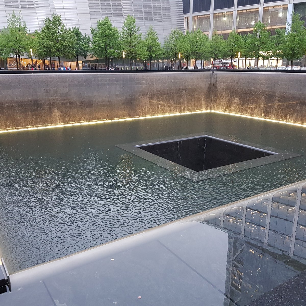 테러가 있었던 곳에서는 희생자들을 위한 추모 공간인 '메모리얼 파크'가 만들어졌습니다. 그곳에는 사각형의 큰 공간에 끊임없이 물이 떨어지는 폭포와 같은 구조물이 있습니다. 이는 '채워도 채워도 채워지지 않는 그들의 빈자리'라는 메시지를 담고 있는 곳이죠.
