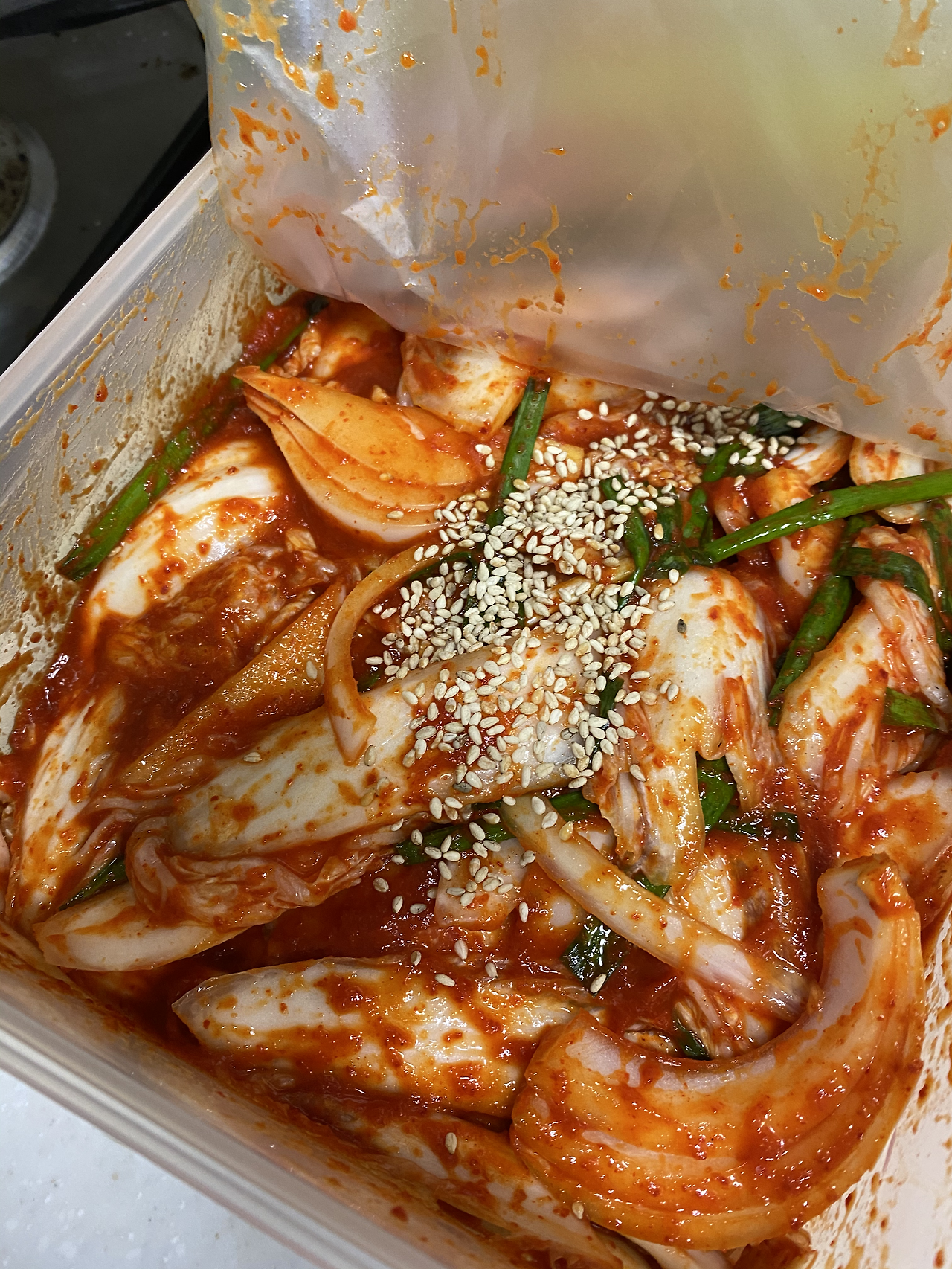 초록창이 추천해준 황금 레시피를 더듬으며 겉절이를 버무린다.