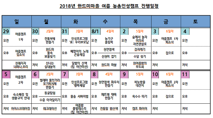 입술을 잘근잘근 씹어먹으며 출근을 하던 내 귀에 꽂힌 단비 같은 한 마디, 캠프라는 게 있었구나! 당장 검색을 시작했다. ‘초등 캠프’, ‘방학 캠프’, ‘어린이 캠프’ 몇 개의 키워드로 포털이 쏟아낸 결과물에 의하면, 캠프라는 게 종류도 목적도 참 다양했다. 영재학교나 상위권 학교의 진학을 목표로 하는 학습형 캠프부터, 영어, 과학, 코딩 등 특정 과목의 체험캠프까지, 참가비용도 헉! 소리 나게 비쌌다. 방학이니 말 그대로 학습은 좀 내려놓고, 스마트폰 없이 맘껏 뛰어 놀다 올 수 있는 곳은, 정말 없는 거야? 그렇게 첫발을 들인 곳이 한드미 마을이었다.