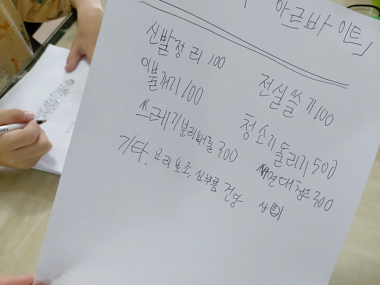 방학을 앞두고 알바를 제안했다. 둘이 임금협상씩이나 해서 근로 소득표 첫 번째 버전을 완성했다. 액수가 너무 적어 동기부여가 안 되거나, 일이 버거워 보이거나 등 변수가 생기면 상황에 맞게 내용을 조정할 생각이다.