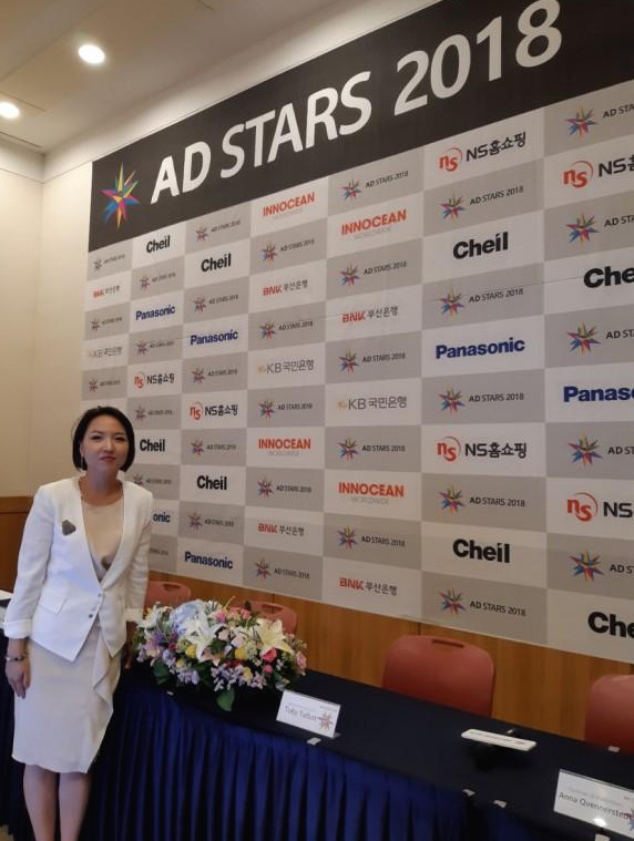 부산 국제 광고제 공식 CI AD STARS2018년, 작년에 내가 맡은 기자회견은 AD STARS 광고제 첫날 국내외 기자, 언론인들을 초대해서 그랑프리(대상)를 제일 먼저 공개하는 자리이다. 그래서 기자회견 1부는 광고제 주최 측에서 인사말, 소개 행사 같은 순서 (MC 진행)를 하고 2부는 각 심사 분야, 경쟁 분야의 심사위원 9명가량을 무대에 초대해서 심사기준, 특이점, 감상과 의견 등을 기자들이 현장에서 물어보는 형식 즉, 외국인 심사위원들의 영어를 한국어로 통역하고 한국인 기자들의 질문을 영어로 통역하는 자리(순차통역 진행)였다.