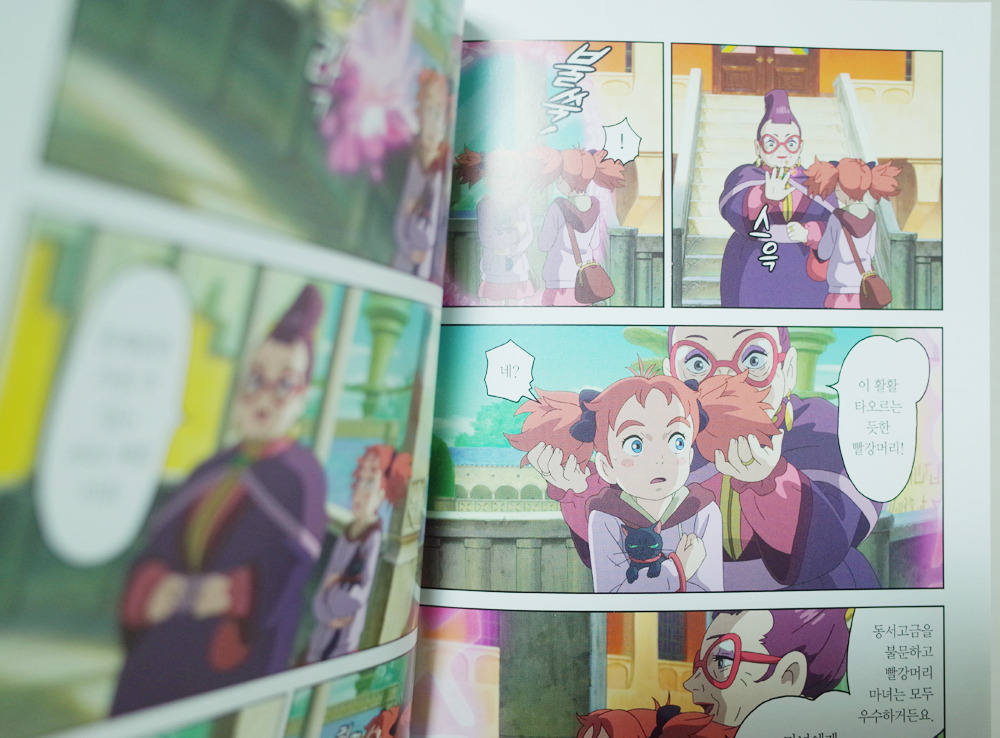 새로운 세계로의 입문해 낯선 상황들을 통한 혼란과 역경의 순간들을 딛고 스스로의 힘으로 상황을 극복한 후 제자리로 돌아오는 과정. 한 마디로 모험기다. 성장을 위한 동력인 역경을 신비롭게 담아낸 <메리와 마녀의 꽃>. 애니메이션 북은 총 2권으로 구성돼 있다. 이 책들에서 두드러지는 것은 화려한 색감이다. 스토리 구조는 평이하고 소재들 역시 익숙한 편이다. 혀를 내두를 정도의 창의성은 돋보이지 않는 작품. 하지만 어린이들의 입장에서는 캐릭터들과 스토리에서 희망과 용기를 느낄 수 있을 것 같다.