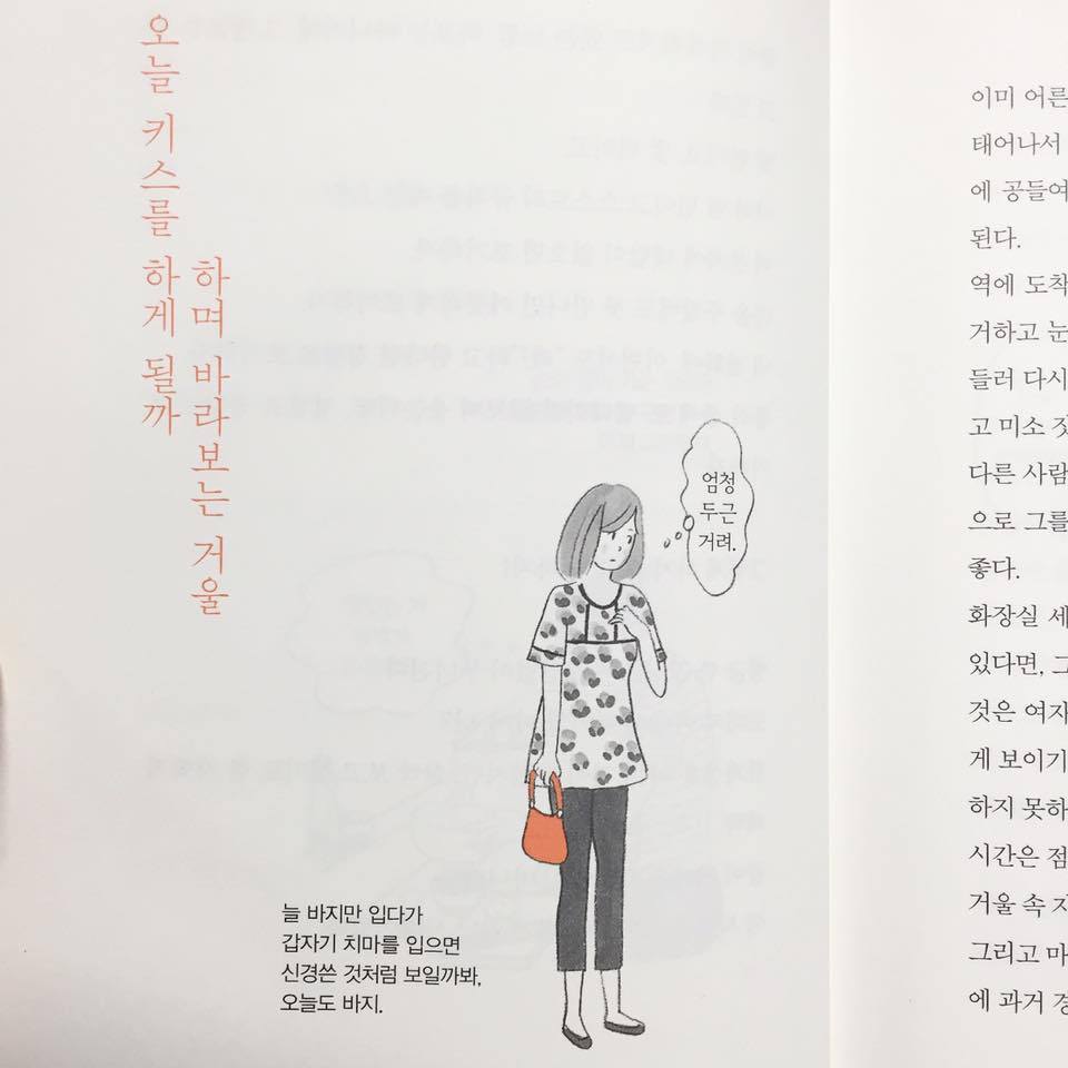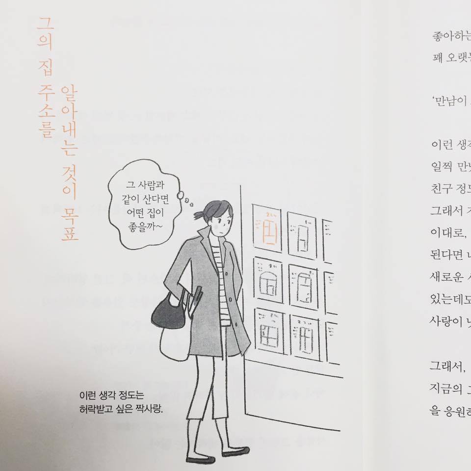 하지만 <나는 사랑을 하고 있어>는, 기존의 책들과 사뭇 다른 분위기를 지니고 있다. 개인적으로 '많이' 좋아하는 책이다. 이유는 '공감'에 있다. 이 책 속에 등장하는 주인공들은 다양하다. 그렇다고, 특정 캐릭터가 등장하는 것은 아니다. 책 속의 다양한 캐릭터들의 성별은 단연 '여성'! 소재는 사랑이다. 특정 인물을 정해두고 심층적으로 파고들지 않음에도 불구하고, 30대 싱글녀들이라면 대부분 공감할 만한 내용들이 거의 대부분이다. 몇몇 에피소드들은, 기혼자의 사랑(연애)을 기술하지만 대부분의 주체는 싱글녀들이다.