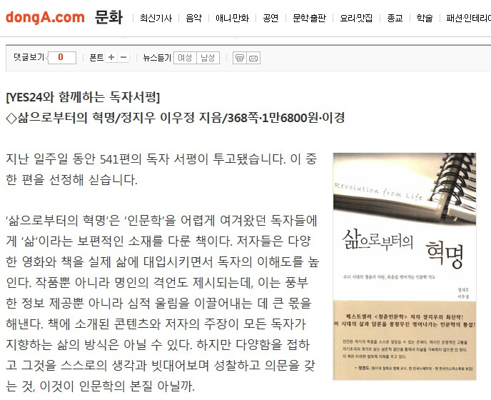 yes24와 동아일보가 함께 진행한 독자서평이벤트에 선정된 서평입니다.
