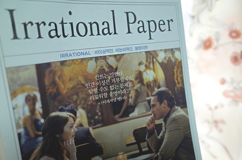 '칸트는 말했다. 인간 이성은 거부할 수도 답할 수도 없는 문제로 괴로워할 운명이라고' 영화의 도입부를 장식하는 문구다. '이레셔널 맨'. 비이성적이며 비논리적인, 불합리한 남자. 이 제목만으로도 영화에 대한 호기심이 일었다.