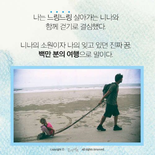 니나의 '느링느링'한 삶은 우리들에게도 귀감이 되어줄 것임에 틀림 없다. 볼프 퀴퍼는, '백만 분의 시간 프로젝트' 이후 또 다른 여행을 준비 중에 있다고 한다. 그의 다음 작품, 벌써부터 기대 중이다. 인생에서 '진짜 중요한 것'이 무엇인지를 일러준 고마운 작품. 이 책을 읽는 동안 늘 '행복'했다. 필자 외의 독자들도 이 책을 접하면서 행복을 느끼고, 자신의 삶을 성찰할 수 있기를 바란다.